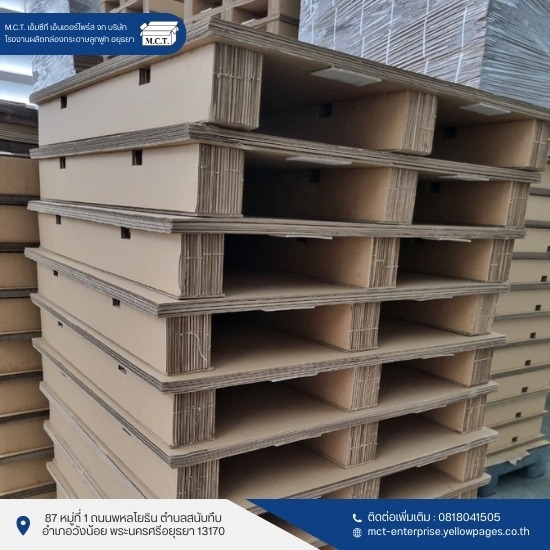 รับผลิตพาเลทกระดาษ (Paper Pallet) จากกระดาษลูกฟูก ตามความต้องการของลูกค้า เพื่อการใช้งานในอุตสาหกรรม การส่งออก บริษัท เอ็ม.ซี.ที.เอ็นเตอร์ไพรส์ จำกัด อยุธยา มีความเชี่ยวชาญประสบการณ์สูงในการรับผลิตพาเลทกระดาษ แข็งแรง ทนทาน เสร็จไว ส่งตรงเวลา ทำงานเป็นระบบระเบียบ มีเครื่องจักรทำการผลิตศักยภาพสูง บริการที่รวดเร็วทุกด้าน ทั้งการให้คำปรึกษา การรับออเดอร์ ขั้นตอนการผลิต การจัดส่ง